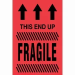 This 3″ x 7″ label with 185 red print clearly marks items that need to be oriented in a specific way during shipping. The pressure-sensitive adhesive ensures it stays in place for secure handling.